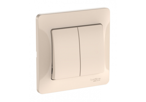 Выключатель 2-клавишный с рамкой Systeme Electric GLOSSA, скрытый монтаж, быстрозажимные клеммы, бежевый