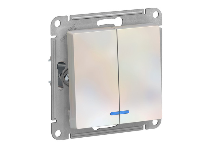 Выключатель 2-клавишный Systeme Electric ATLASDESIGN, с подсветкой, скрытый монтаж, жемчуг