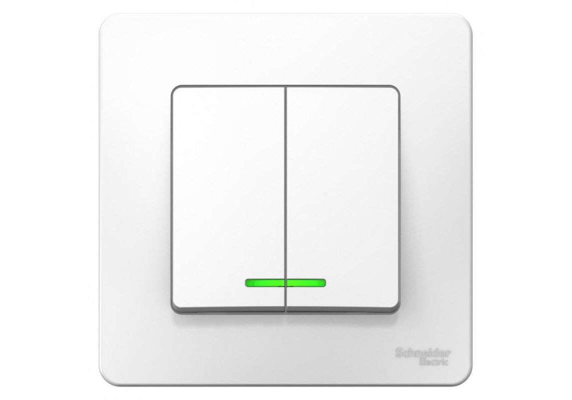 Выключатель 2-клавишный Systeme Electric BLANCA с подсветкой, скрытый монтаж, белый