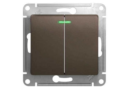 Выключатель 2-клавишный Systeme Electric GLOSSA, с подсветкой, скрытый монтаж, шоколад