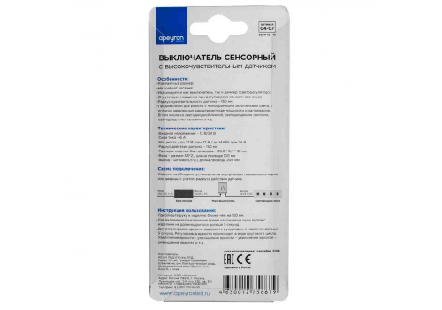 Выключатель бесконтактный Apeyron 12/24В 72/144Вт 6А, вход 100мм, выход 200мм 04-07