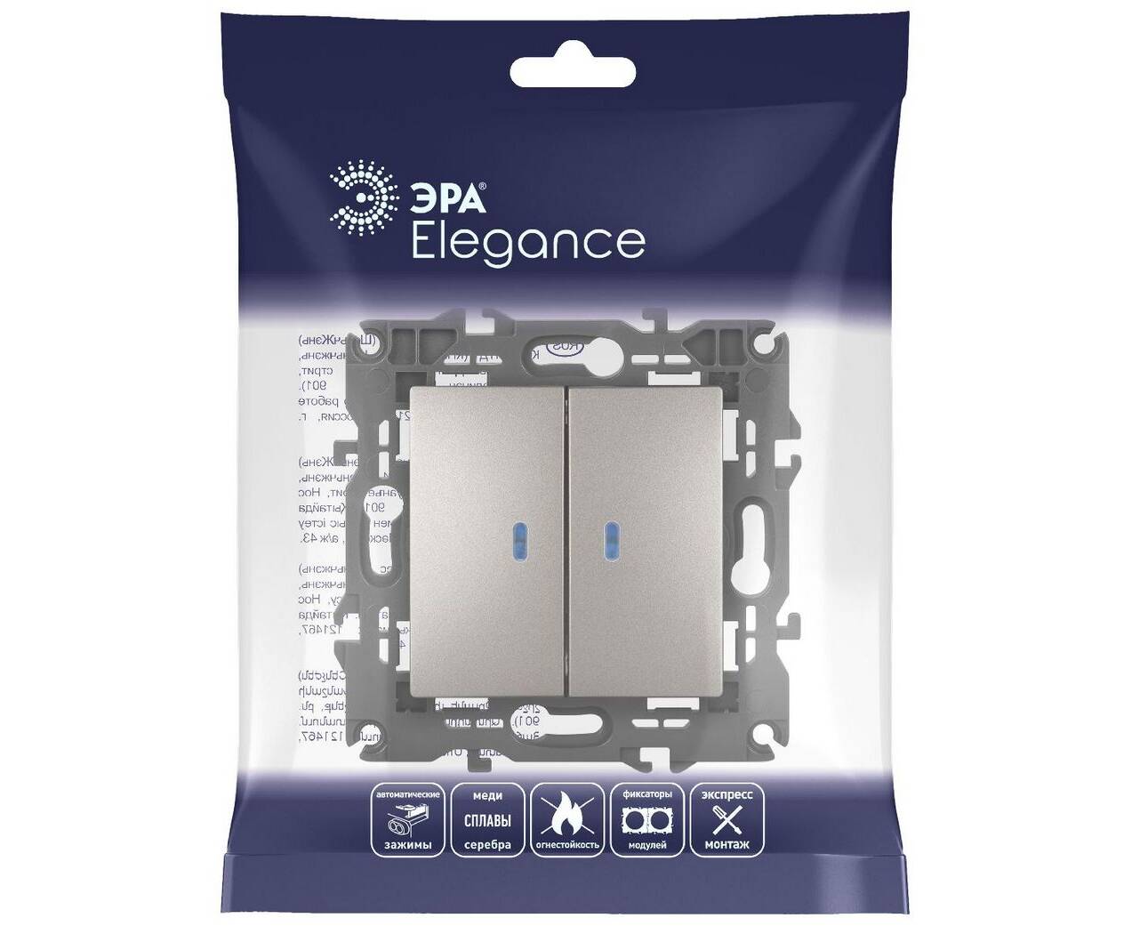Выключатель двойной с подсветкой Эра Elegance 14-1105-16 Б0065789