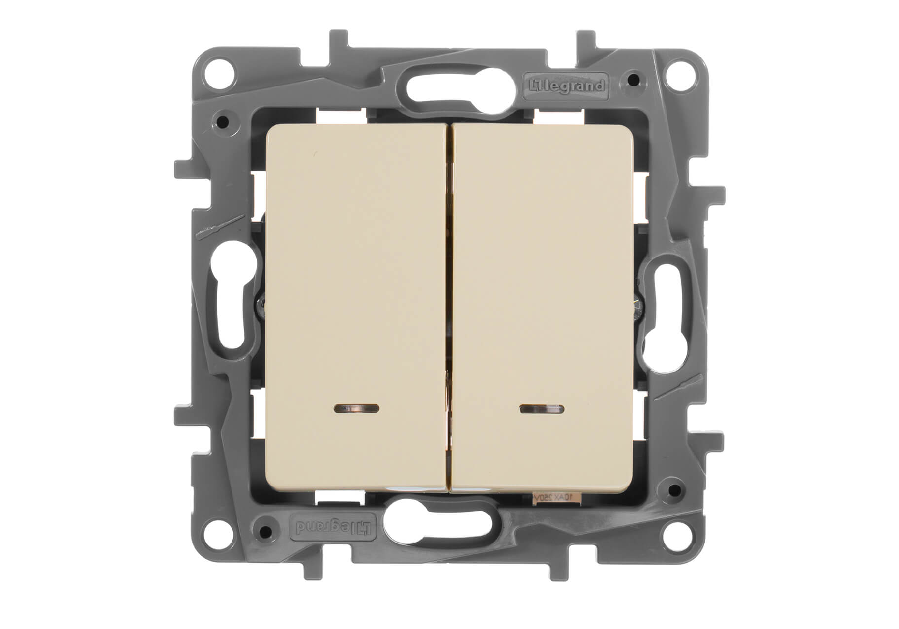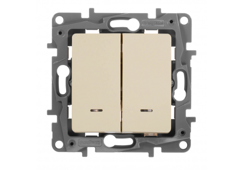 Выключатель двухклавишный Legrand Etika 10A 250V с подсветкой слоновая кость 672304