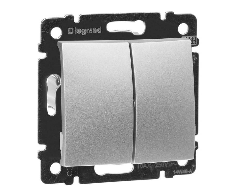 Выключатель двухклавишный Legrand Valena 10A 250V алюминий 770105
