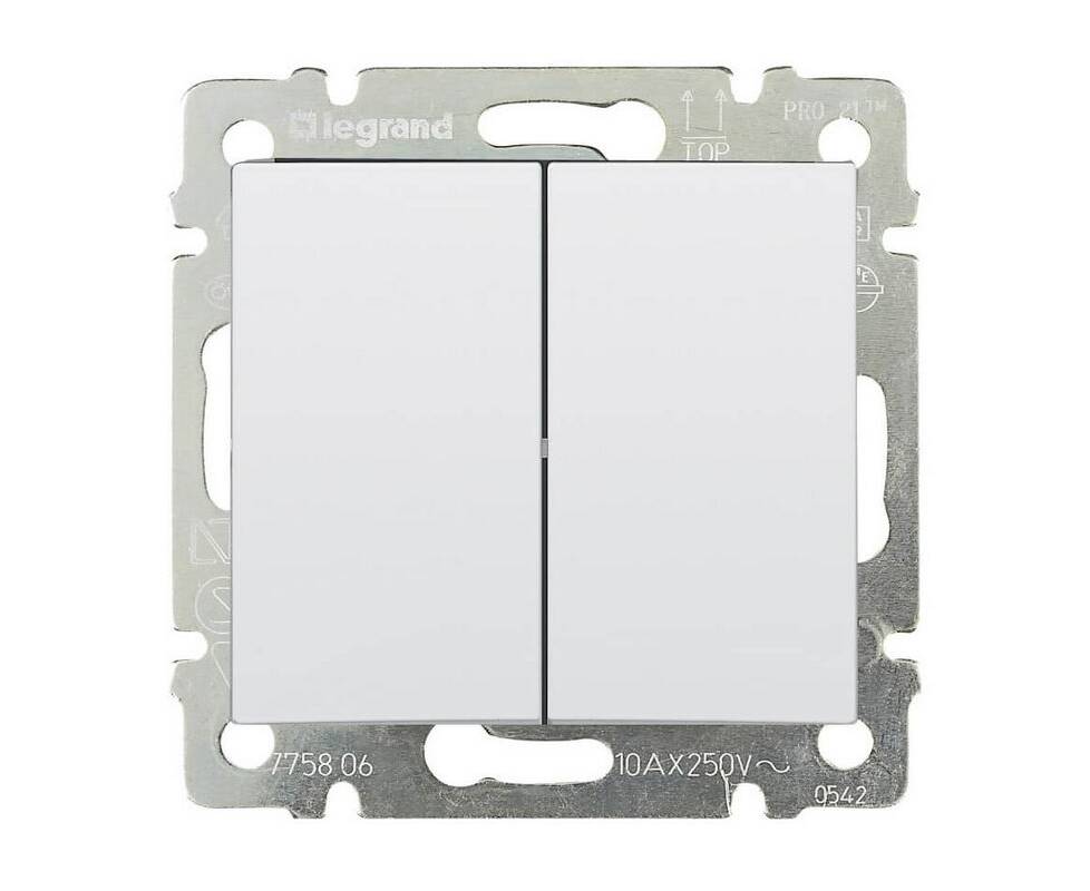 Выключатель двухклавишный Legrand Valena 10A 250V белый 774405