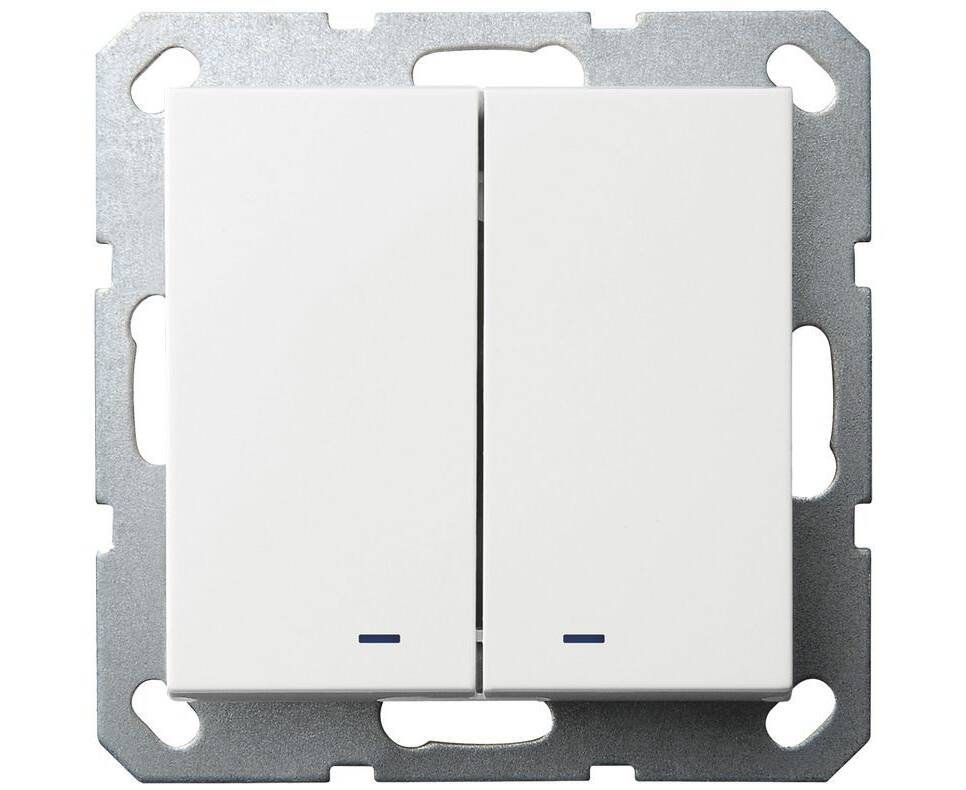 Выключатель двухклавишный перекрестный Jasmart со светодиодами с накладкой 10A 250V белый глянцевый