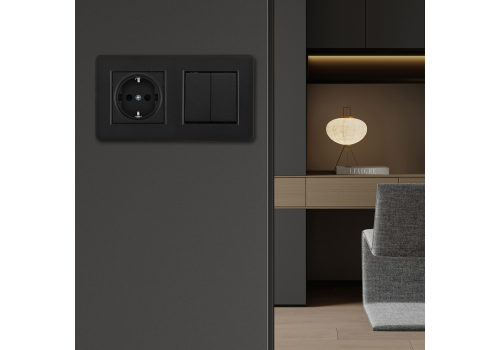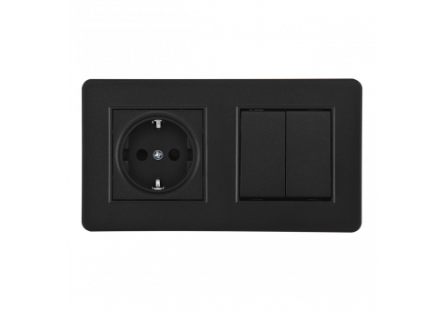Выключатель двухклавишный с розеткой Arte Milano SET16-2-40-1-30-2 black