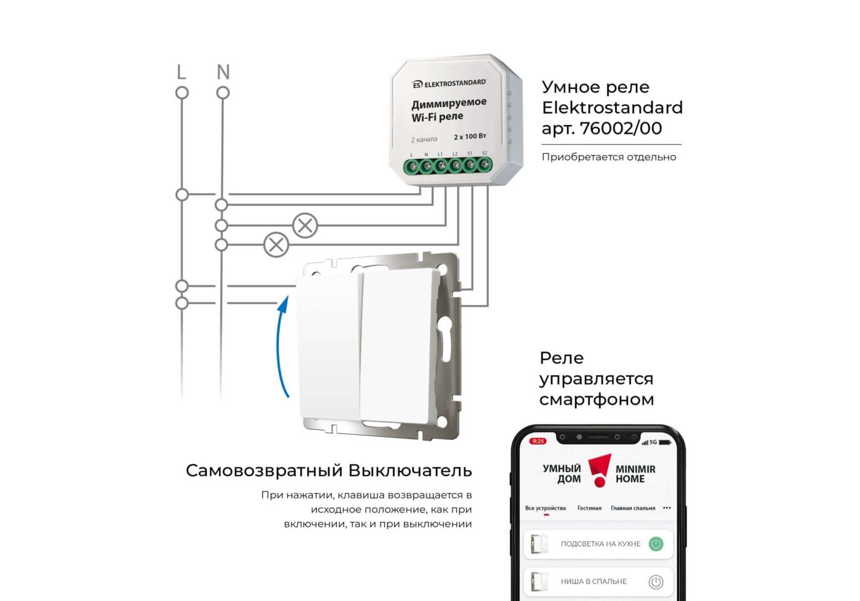 Выключатель двухклавишный с самовозвратом Werkel белый W1122401 4690389192319