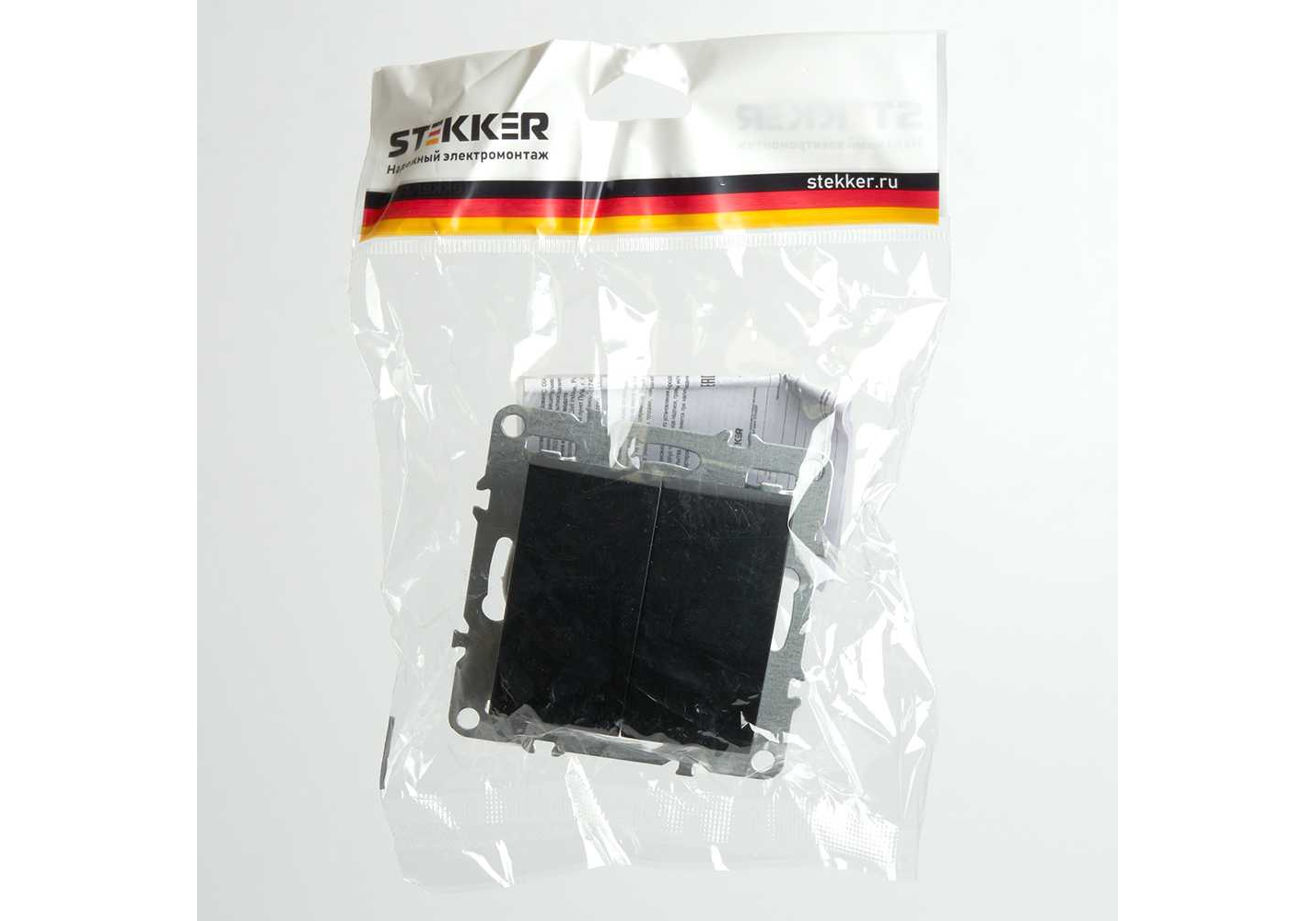 Выключатель двухклавишный Stekker Эрна черный PSW10-9104-03 49149