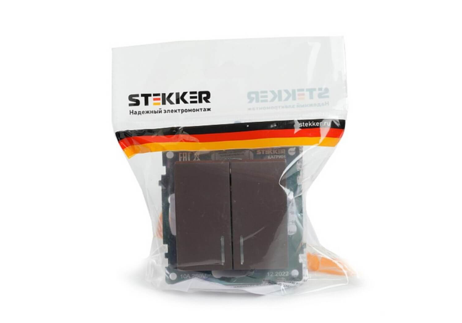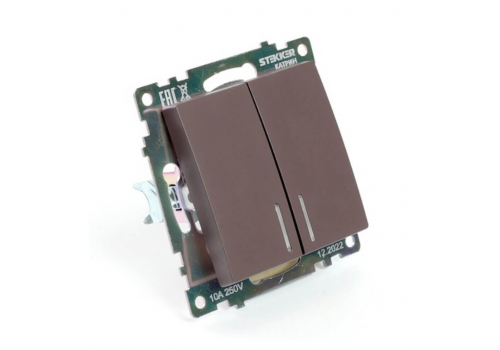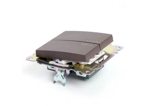 Выключатель двухклавишный Stekker Катрин с подсветкой шоколад GLS10-7102-04 49021
