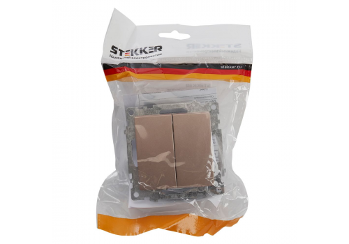 Выключатель двухклавишный Stekker Катрин шампань GLS10-7104-02 39592