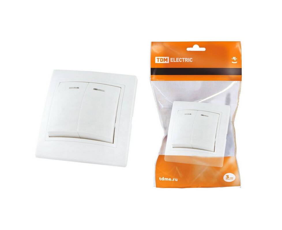 Выключатель двухклавишный TDM Electric Таймыр 10А 250V с подсветкой белый SQ1814-0005