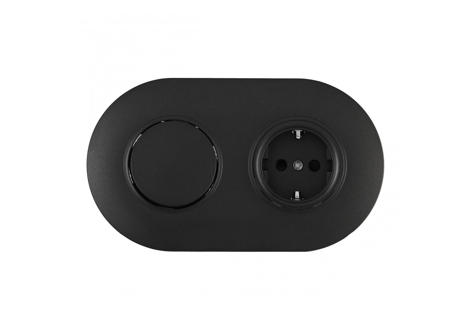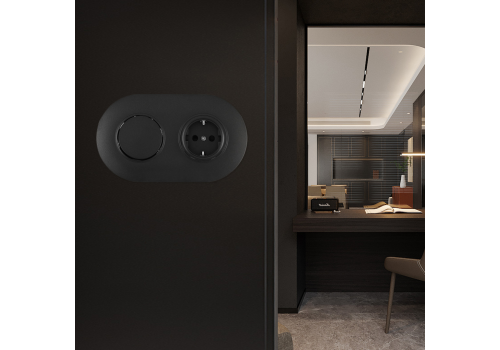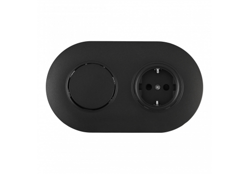 Выключатель круглый одноклавишный с розеткой с/з и шторками Arte Milano SET08-2-40-1-30-1 black