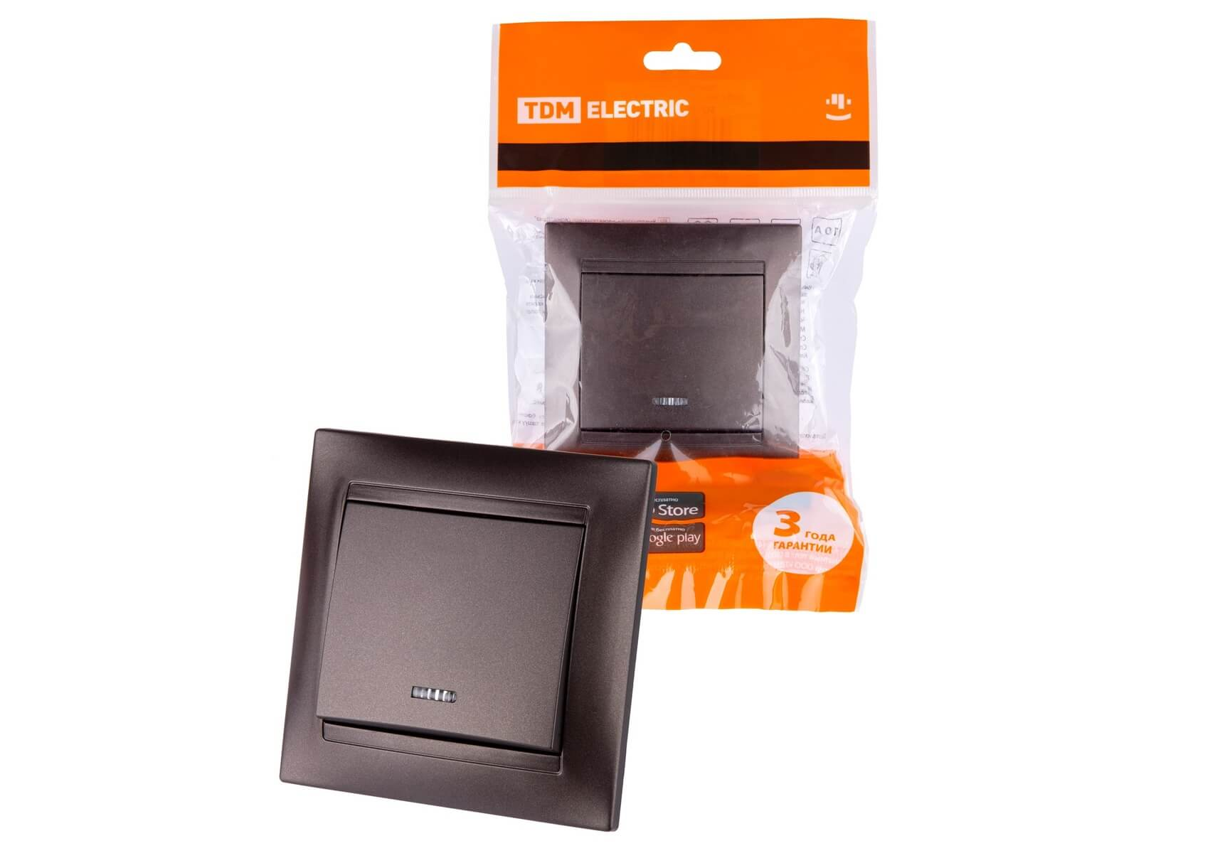 Выключатель одноклавишный TDM Electric Лама 10А 250V с подсветкой шоколад SQ1815-0504