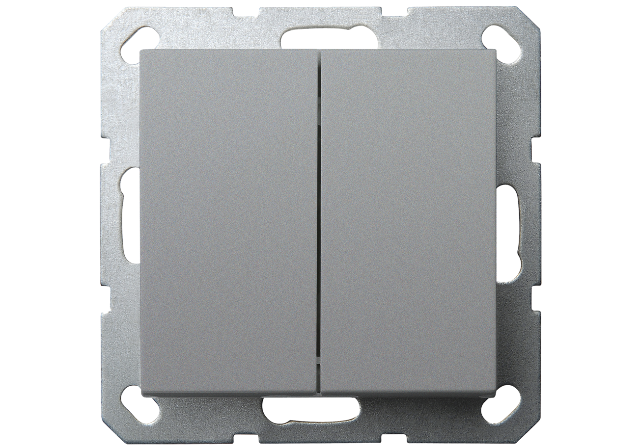 Выключатель проходной двухклавишный Jasmart в комплекте с накладкой 10A 250V ( 6+6 ) цвет алюминий G
