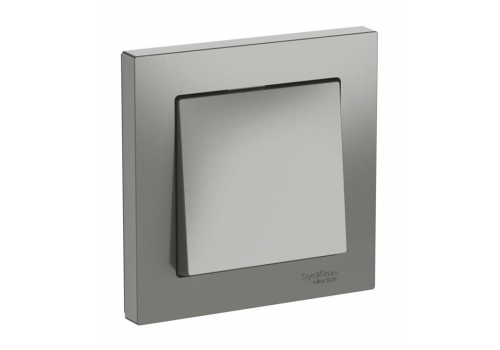 Выключатель с рамкой 1-клавишный Systeme Electric ATLAS DESIGN, скрытый монтаж, быстрозажимные клеммы, сталь