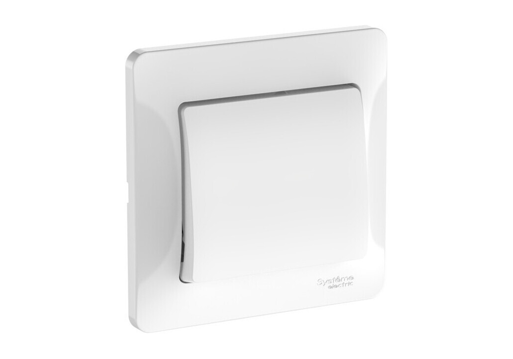 Выключатель с рамкой 1-клавишный Systeme Electric GLOSSA, скрытый монтаж, быстрозажимные клеммы, белый