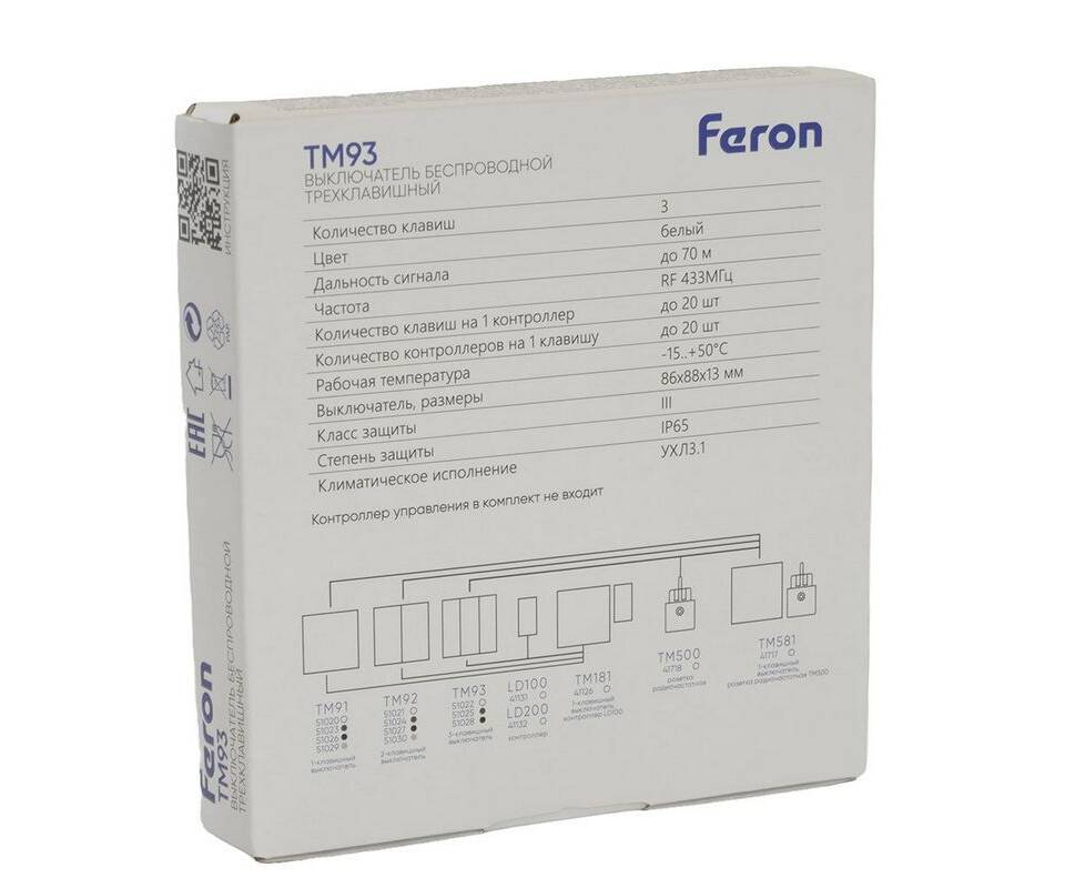 Выключатель трехклавишный беспроводной Feron Smart белый TM93 51022