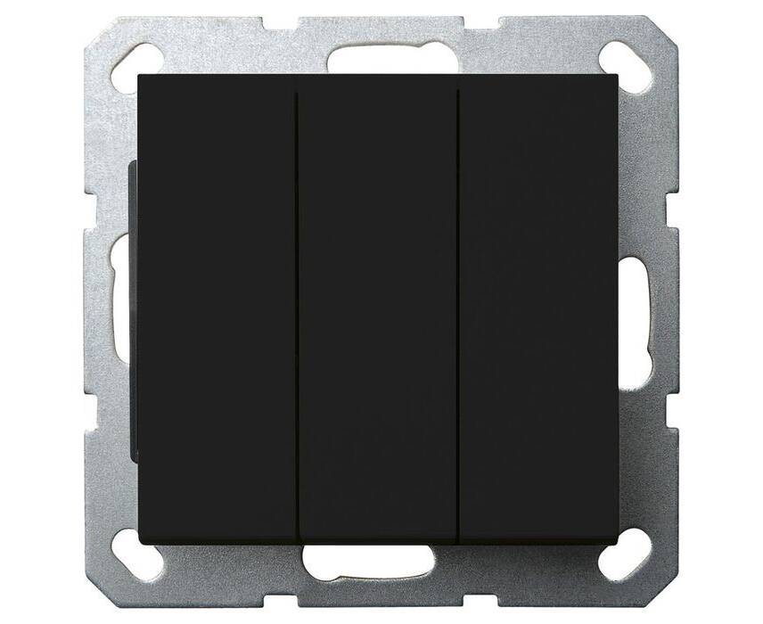 Выключатель трехклавишный Jasmart с накладкой 10A 250V черный матовый (soft touch) G3031PB