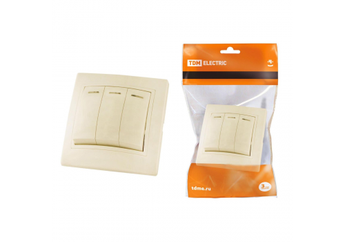 Выключатель трехклавишный TDM Electric Таймыр 10А 250V с подсветкой слоновая кость SQ1814-0106