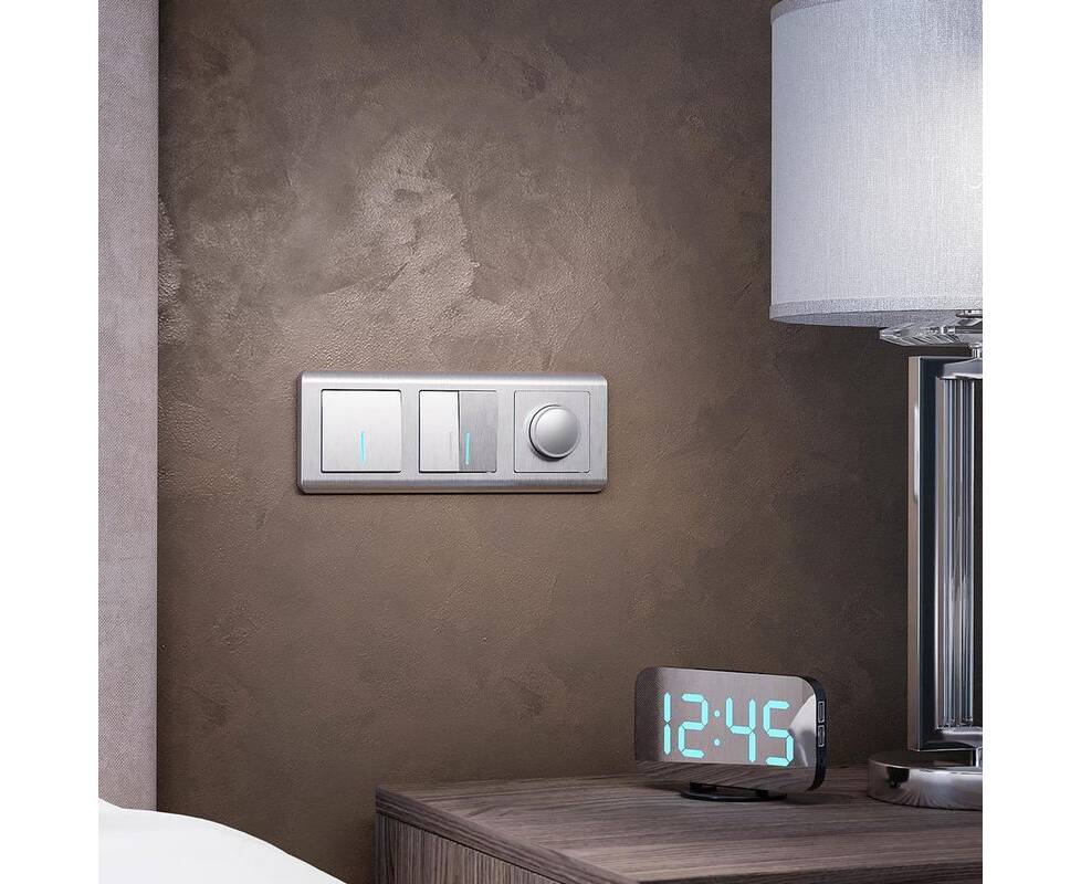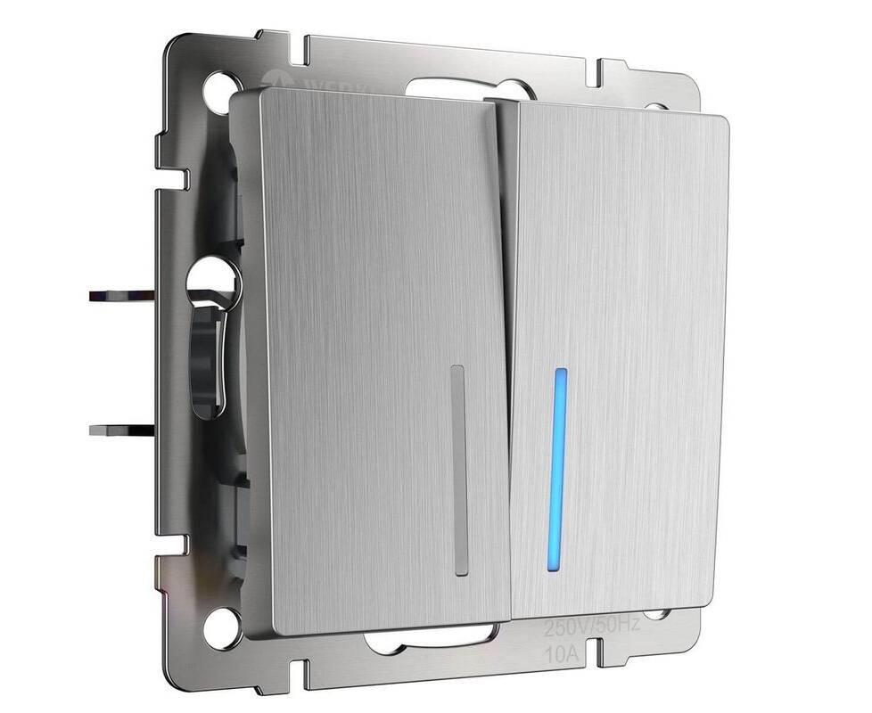 Выключатель Werkel двухклавишный проходной с подсветкой cеребряный рифленый W1122109 4690389159633