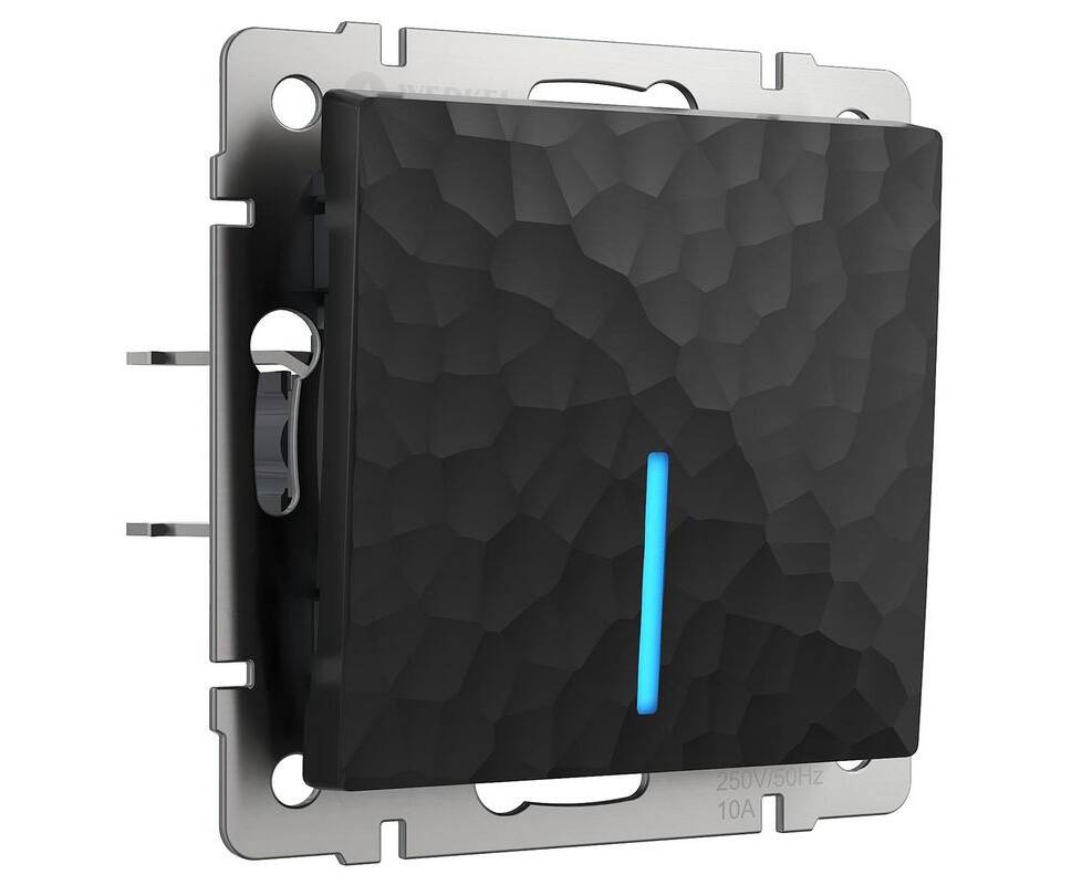 Выключатель Werkel Hammer одноклавишный проходной с подсветкой черный W1212108 4690389162145