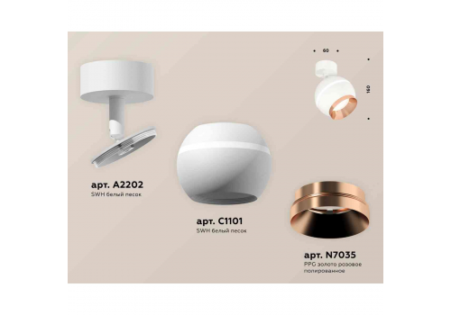 Комплект накладного светильника Ambrella light Techno Spot XM1101005 SWH/PPG белый песок/золото розовое полированное (A2202,C1101,N7035)