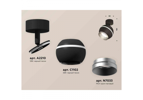 Комплект накладного светильника Ambrella light Techno Spot XM1102003 SBK/MCH черный песок/хром матовый (A2210, C1102, N7033)