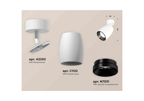 Комплект накладного светильника Ambrella light Techno Spot XM1122001 SWH/PBK белый песок/черный полированный (A2202, C1122, N7031)