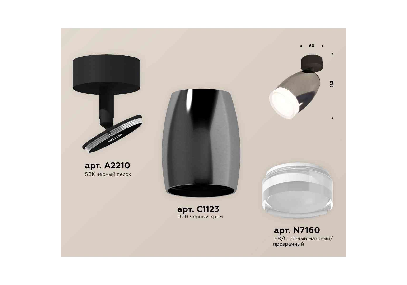 Комплект накладного светильника Ambrella light Techno Spot XM1123005 DCH/SBK/FR черный хром/черный песок/белый матовый (A2210, C1123, N7160)
