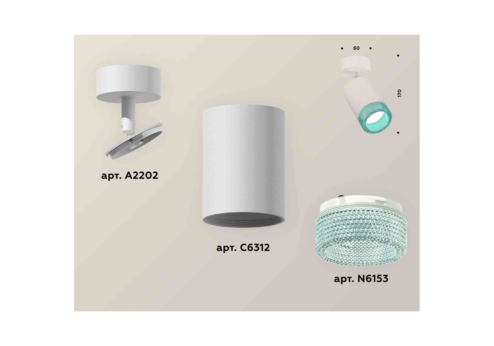 Комплект накладного светильника Ambrella light Techno Spot XM6312004 SWH/BL белый песок/голубой (A2202, C6312, N6153)