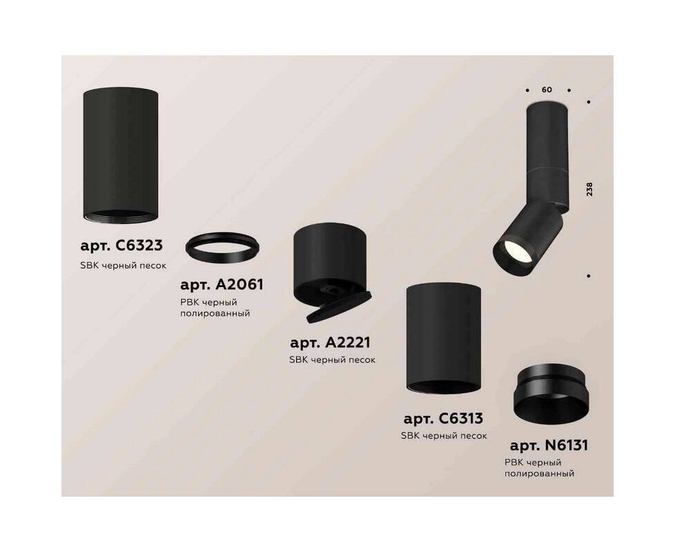Комплект накладного светильника Ambrella light Techno Spot XM6313115 SBK/PBK черный песок/черный полированный (C6323,A2061,A2221,C6313,N6131)
