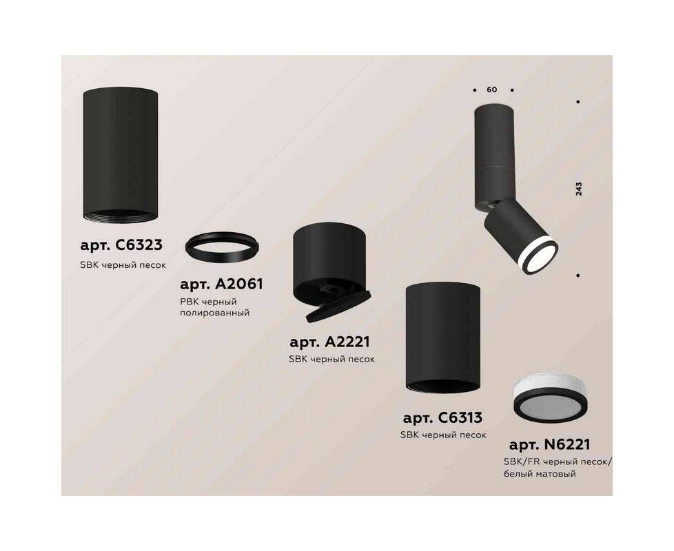 Комплект накладного светильника Ambrella light Techno Spot XM6313120 SBK/FR черный песок/белый матовый (C6323,A2061,A2221,C6313,N6221)