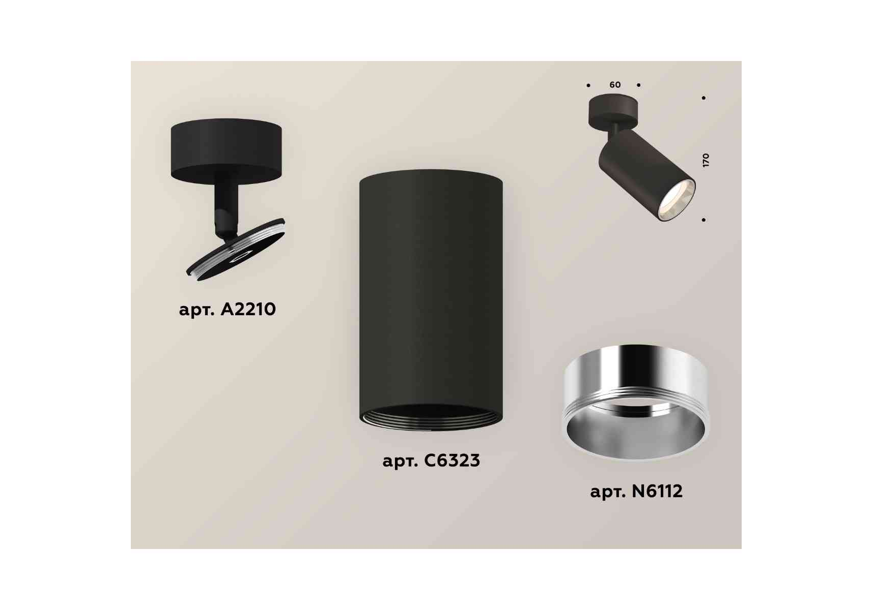 Комплект накладного светильника Ambrella light Techno Spot XM6323003 SBK/PSL черный песок/серебро полированное (A2210, C6323, N6112)