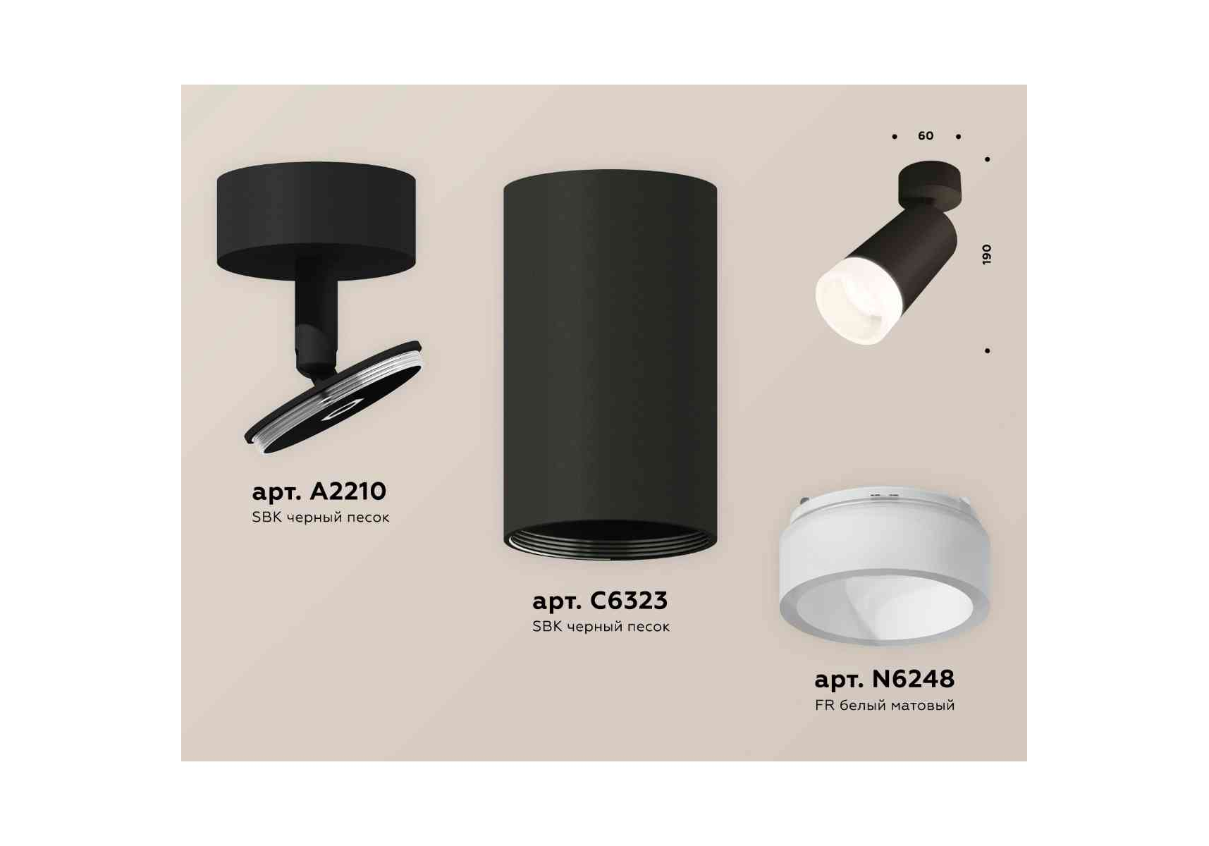 Комплект накладного светильника Ambrella light Techno Spot XM6323011 SBK/FR черный песок/белый матовый (A2210, C6323, N6248)