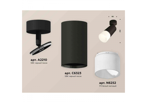 Комплект накладного светильника Ambrella light Techno Spot XM6323012 SBK/FR черный песок/белый матовый (A2210, C6323, N6252)