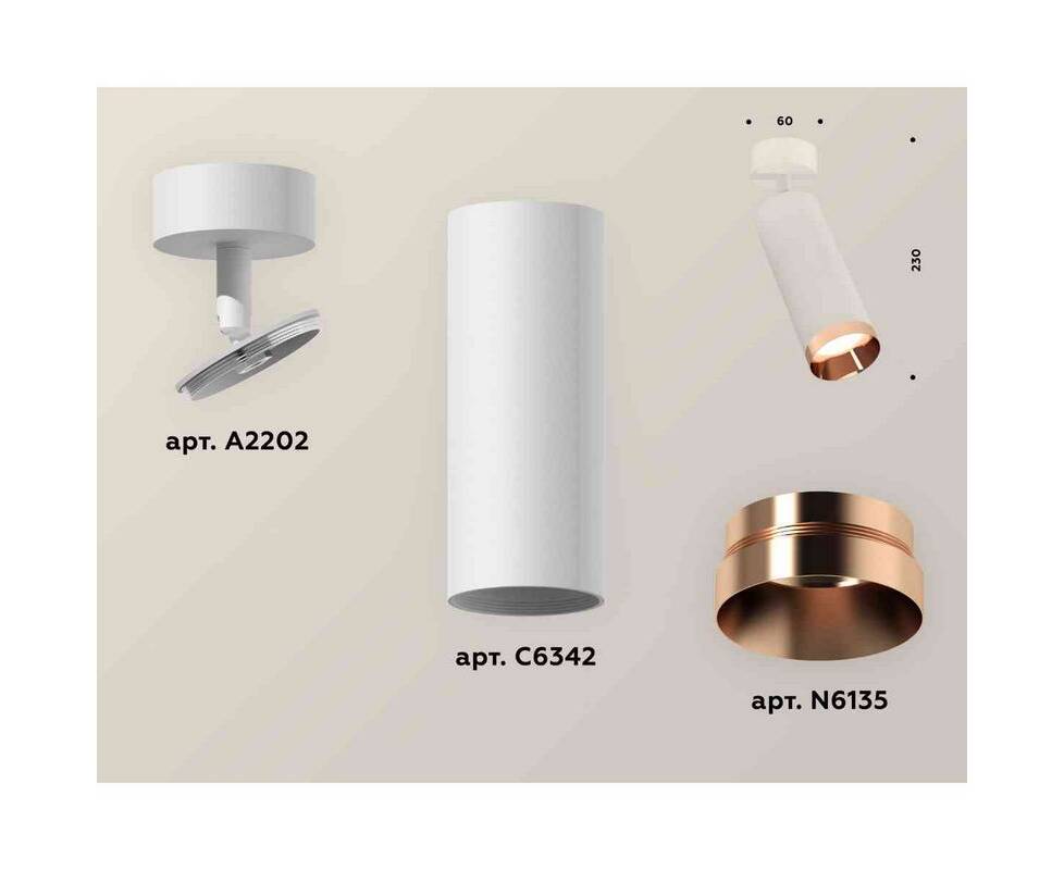 Комплект накладного светильника Ambrella light Techno Spot XM6342006 SWH/PPG белый песок/золото розовое полированное (A2202, C6342, N6135)
