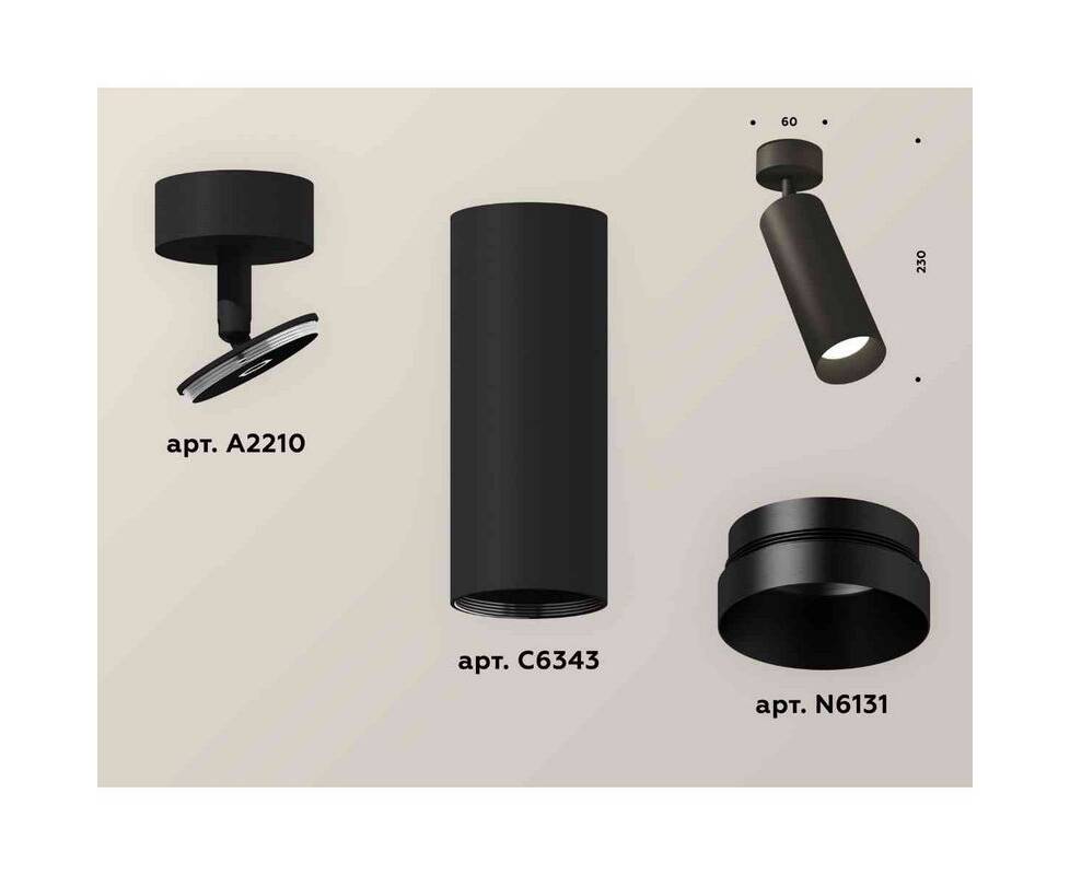 Комплект накладного светильника Ambrella light Techno Spot XM6343002 SBK/PBK черный песок/черный полированный (A2210, C6343, N6131)