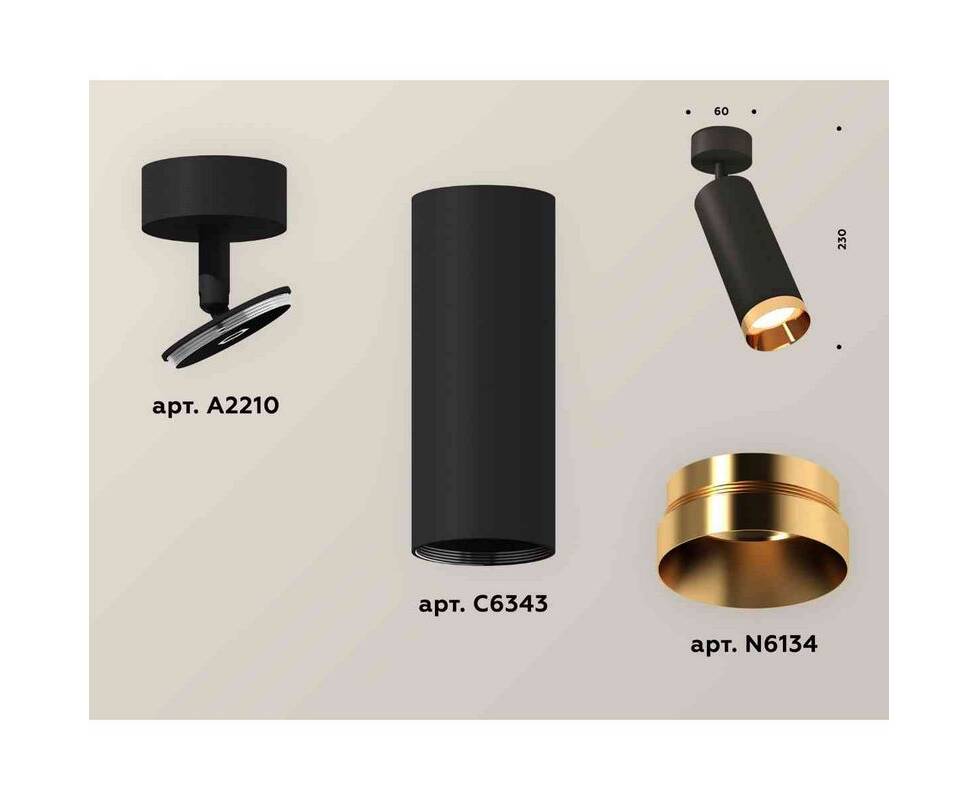 Комплект накладного светильника Ambrella light Techno Spot XM6343005 SBK/PYG черный песок/золото желтое полированное (A2210, C6343, N6134)