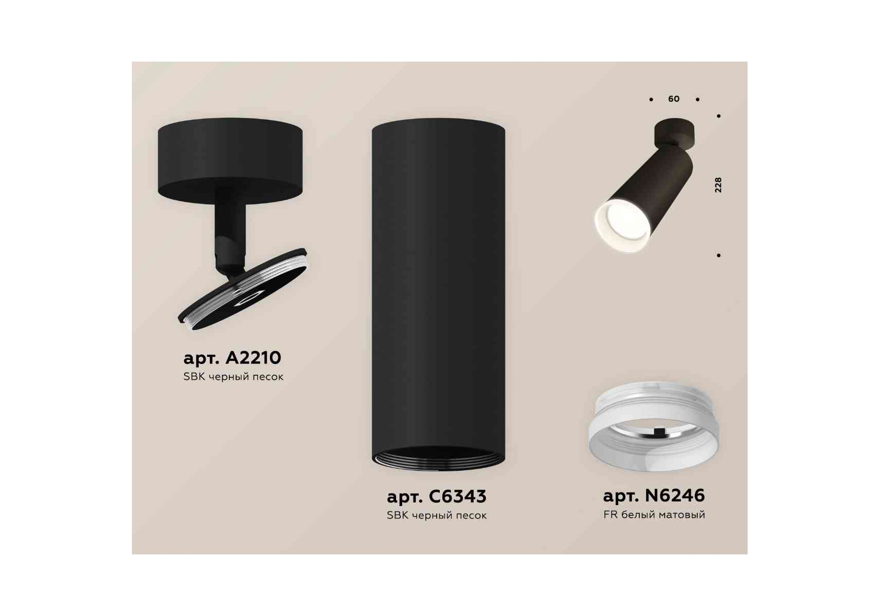 Комплект накладного светильника Ambrella light Techno Spot XM6343010 SBK/FR черный песок/белый матовый (A2210, C6343, N6246)