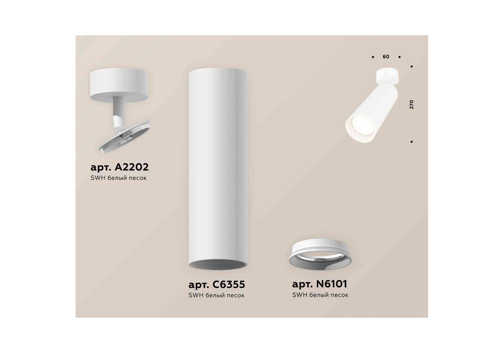 Комплект накладного светильника Ambrella light Techno Spot XM6355001 SWH белый песок (A2202, C6355, N6101)