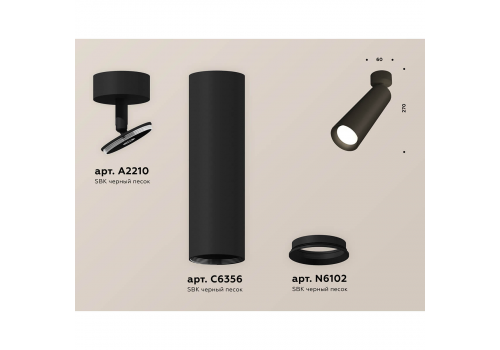 Комплект поворотного светильника Ambrella light Techno XM6356001 SBK черный песок MR16 GU5.3 (A2210, C6356, N6102)