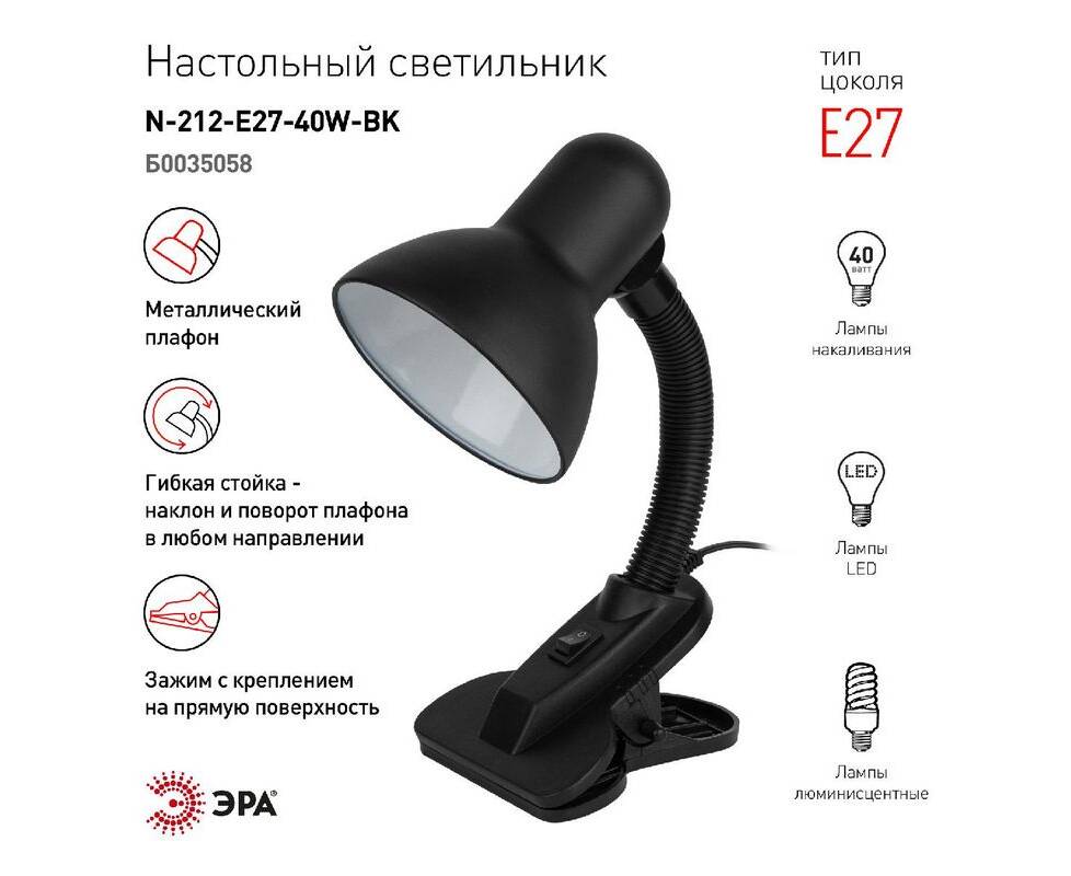 Настольная лампа Эра N-212-E27-40W-BK Б0035058