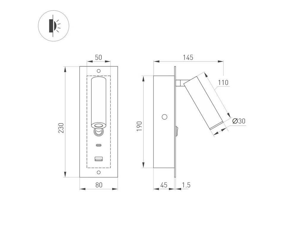 Встраиваемый светодиодный спот Arlight SP-Bed-Charge-Built-S80x230-3W Warm3000 046881