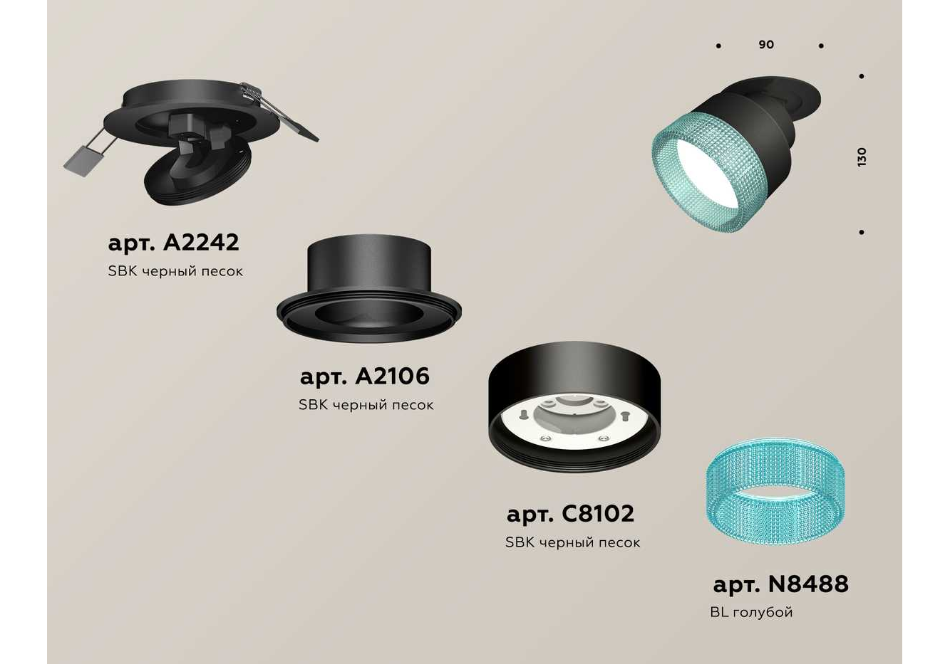 Комплект встраиваемого спота Ambrella light Techno Spot XM (A2242, A2106, C8102, N8488) XM8102543