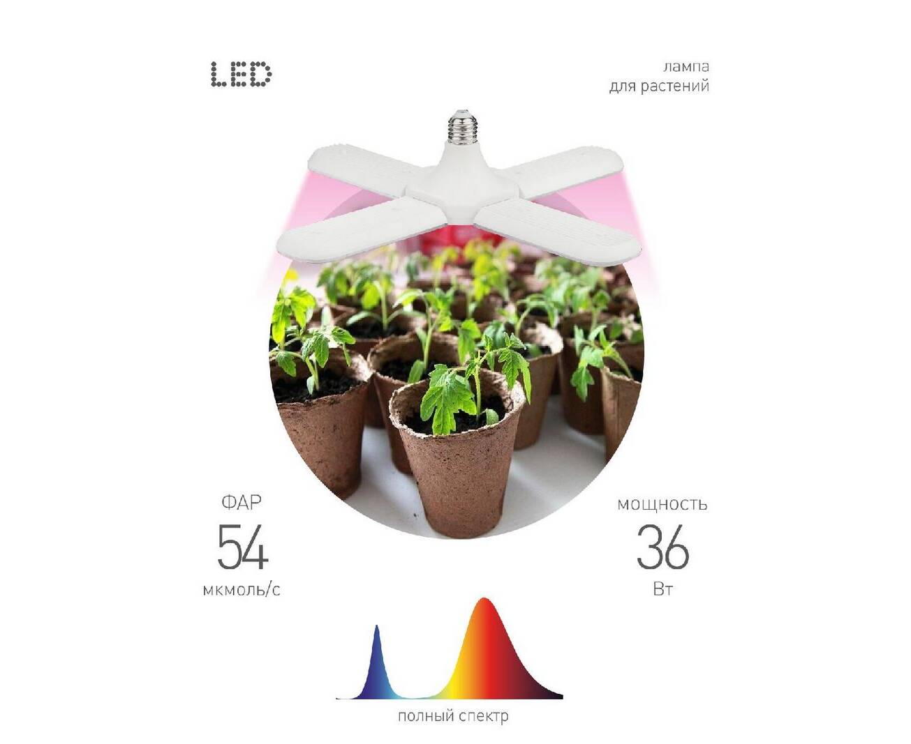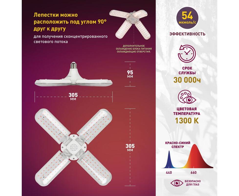 Светильник для растений Эра FITO-36W-RB-E27-FOLD Б0053289
