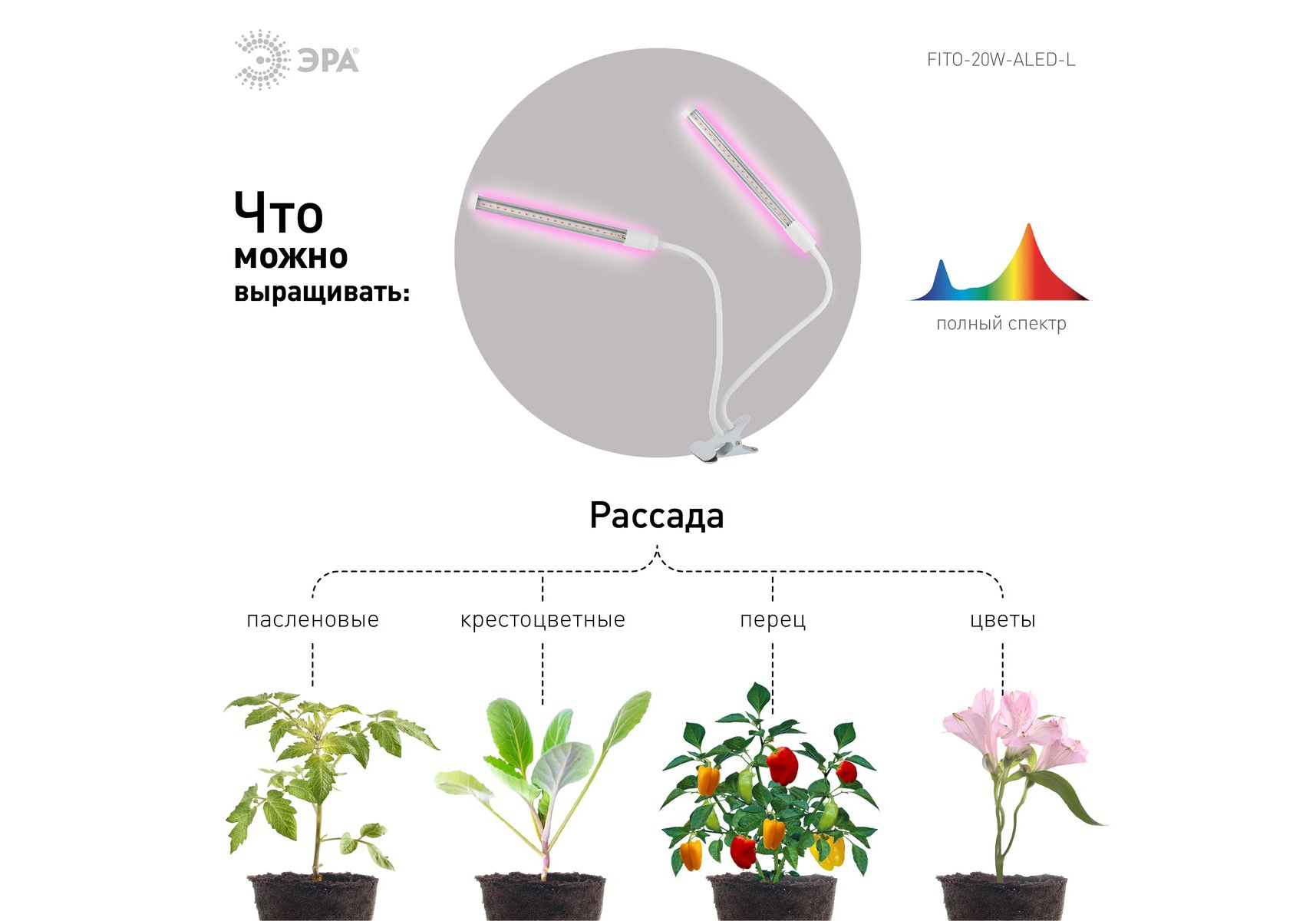 Светильник для растений на прищепке ЭРА FITO-20W-АLED-L Б0049550