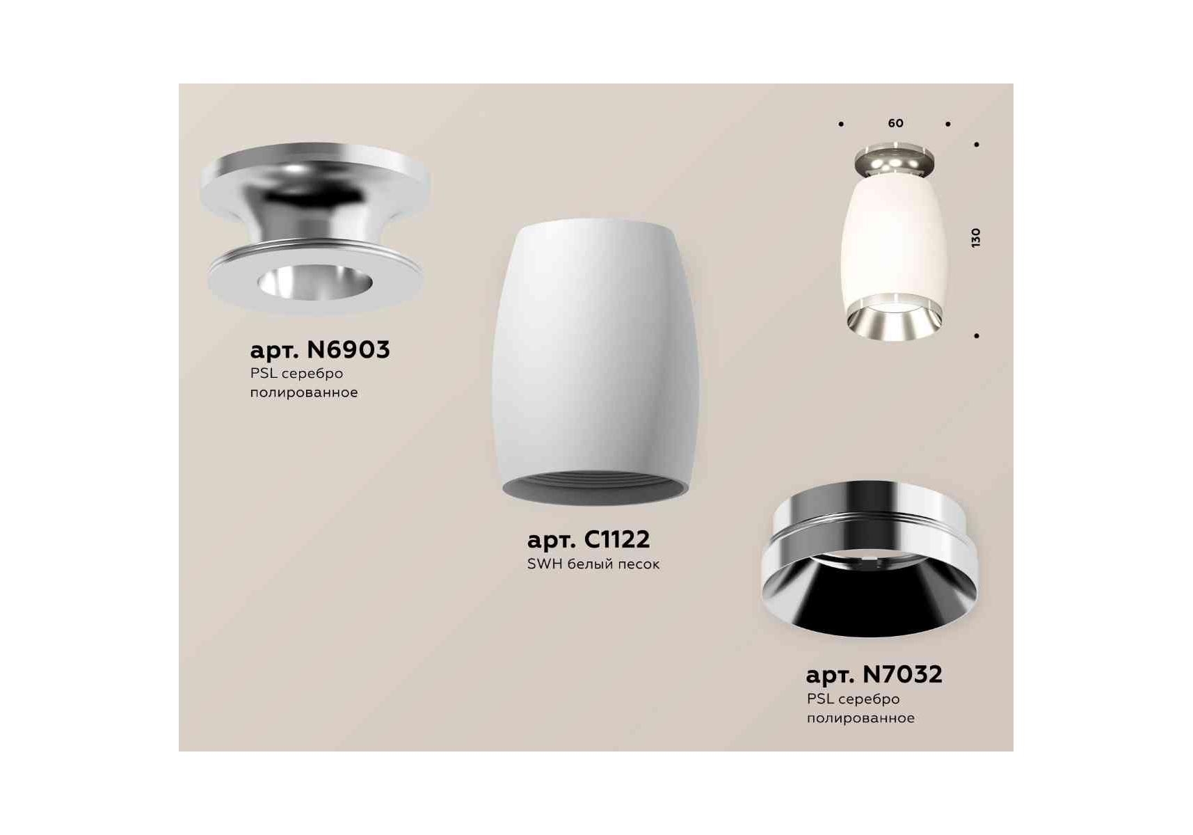 Комплект накладного светильника Ambrella light Techno Spot XS1122042 SWH/PSL белый песок/серебро полированное (N6903, C1122, N7032)