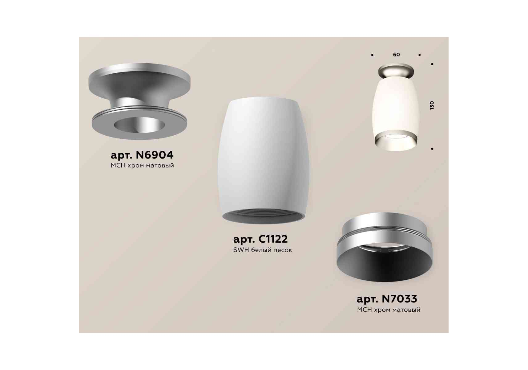 Комплект накладного светильника Ambrella light Techno Spot XS1122043 SWH/MCH белый песок/хром матовый (N6904, C1122, N7033)