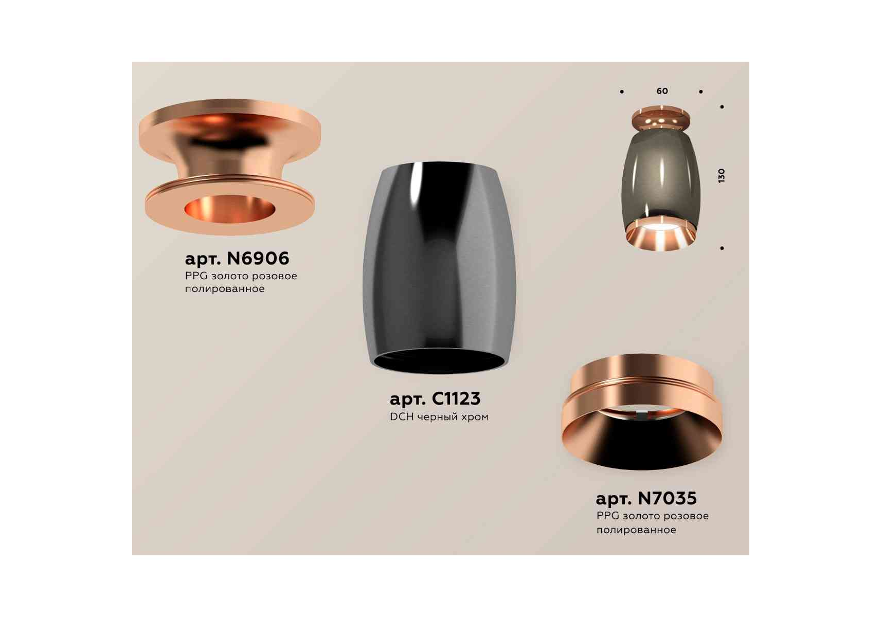 Комплект накладного светильника Ambrella light Techno Spot XS1123044 DCH/PPG черный хром/золото розовое полированное (N6906, C1123, N7035)